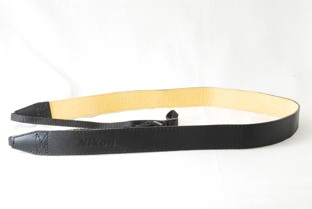 > ☆Nikon ニコン レザー ストラップ 革 型押し文字 黒色(ブラック)×黄色(イエロー)純正 生産終了品 Camera Leather Strap カメラ 皮 レア☆