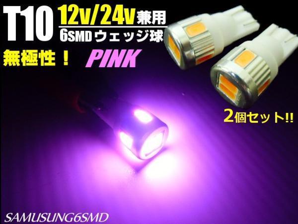 > メール便可 12V/24V 兼用 T10 ウェッジ 6SMD ピンク LED バルブ 2個/スモール ポジション球 ナンバー灯 トラック G