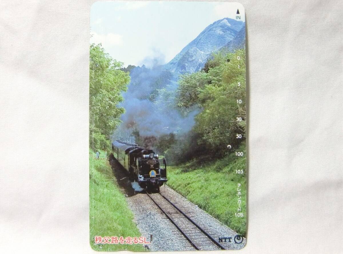 - 使用済みテレカ【秩父路を走るSL】送料¥85【管ST005】縦図柄