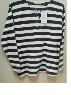 - ●新品綺麗なグリーン白ボーダーカットソーMサイズ