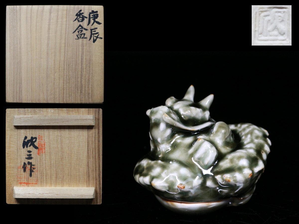 - ◆天神窯・岡本欣三・庚辰・香合・干支・龍・栞・共布・共箱◆aaa358