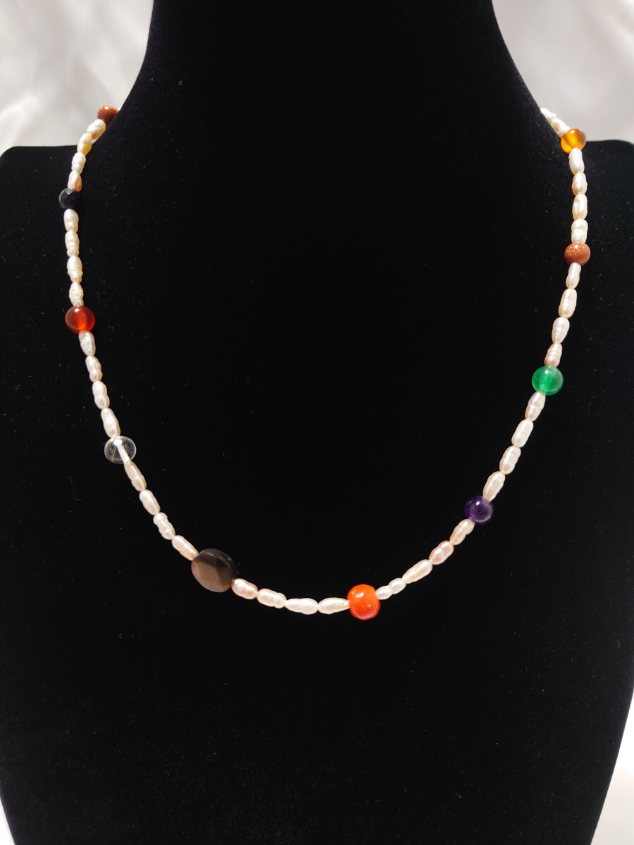 > 淡水真珠 アメジスト 茶金石 水晶 メノウ オリジナルデザインネックレス 淡水真珠ネックレス マグネット式 管理No.N-201