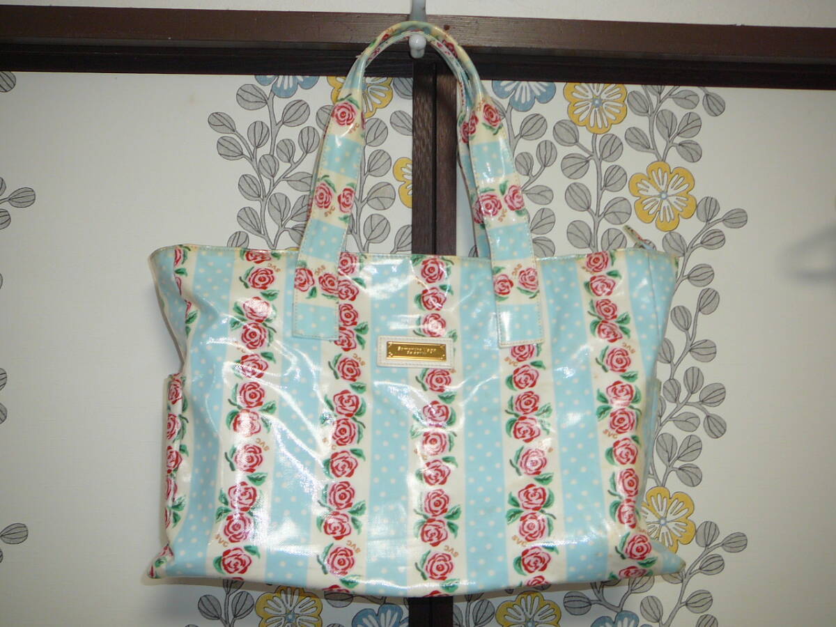 - サマンサベガ トートバッグ 大 ファスナー開閉 塩ビ素材 ライトブルー系 バラ柄