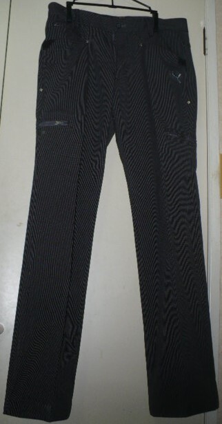 > 美品 PUMA【プーマジャパン(株)】製ドットストライプゴルフパンツ 76cm 黒×白 (1)タック入り?立体裁断?スラックス