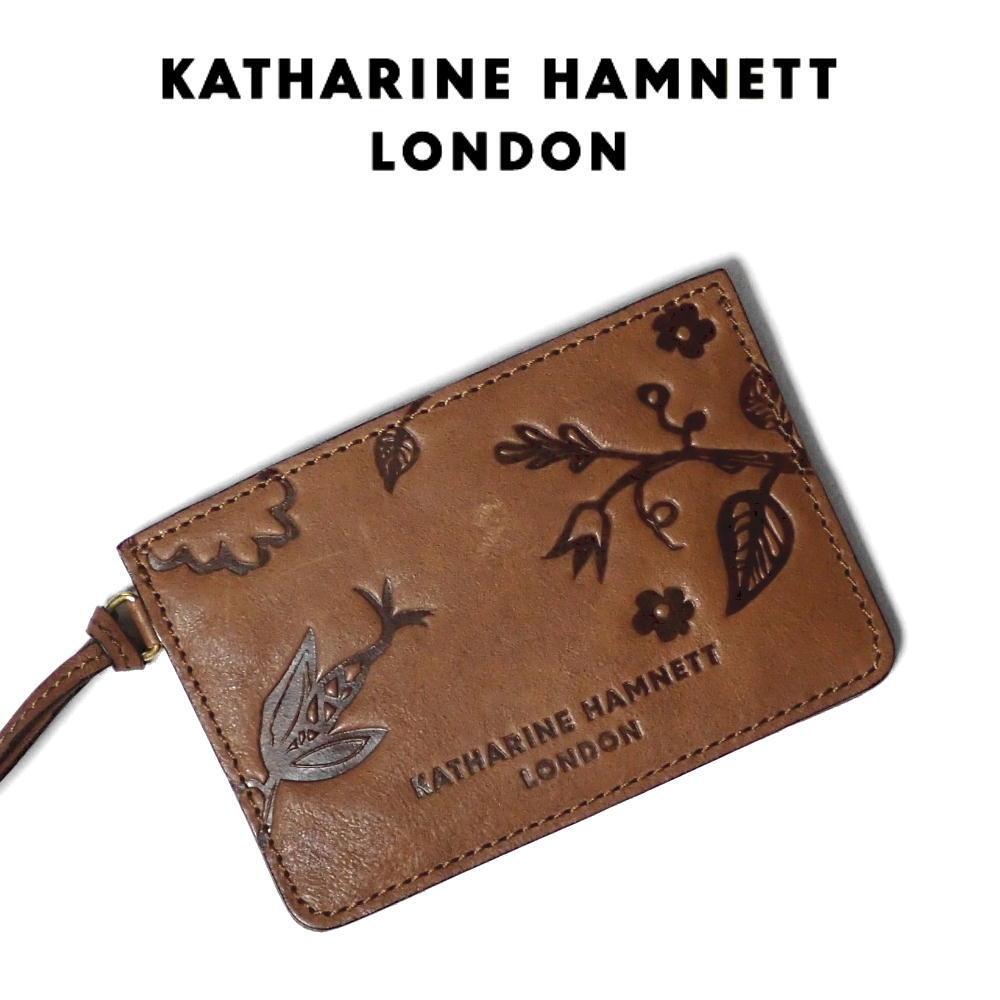 - KATHARINE HAMNETT[キャサリン・ハムネット]単パスケース【ウォッシュ】イタリア製牛革 ブラウン 訳あり 本物保証