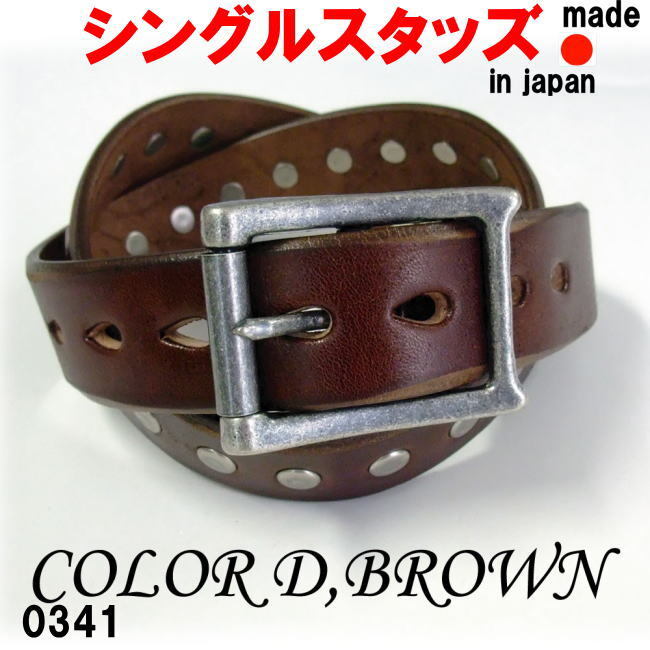 - ダークブラウン 36インチ 牛革 日本製 0341 ハンドメイド シングルスタッズ ベルト メンズ レディース