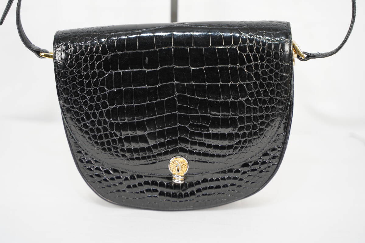 - マルウ ヴィンテージ ショルダーバッグ クロコ ブラック ゴールド金具 斜め掛け可能 センター取り