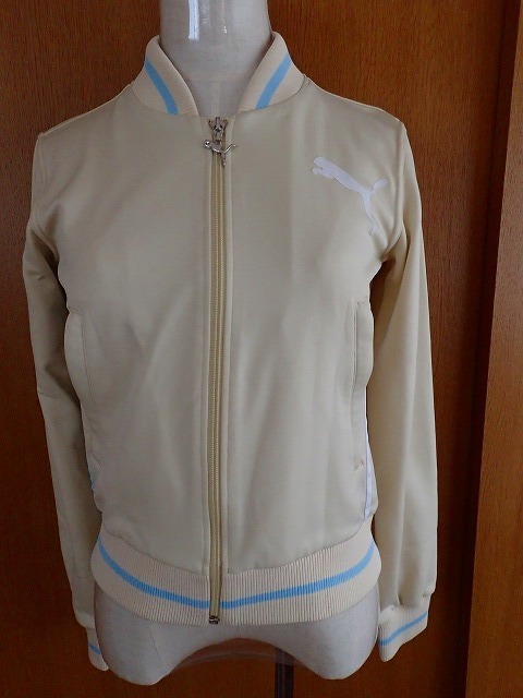 > ★65a 美品 USED PUMA トラックジャケット M ベージュ 丈短め★プーマ ジャージ 上着 ジップアップ Y2Kファッション 平成 2000年 ギャル