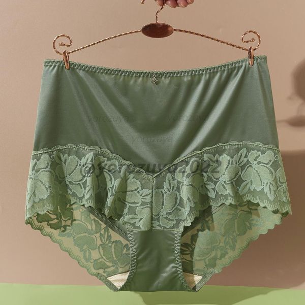 > 121-144-9 光沢感 セクシー レース パンティー【リーフグリーン,XL程度(F)】大きいサイズ プラスサイズ 女性 レディース 下着 ショーツ .1