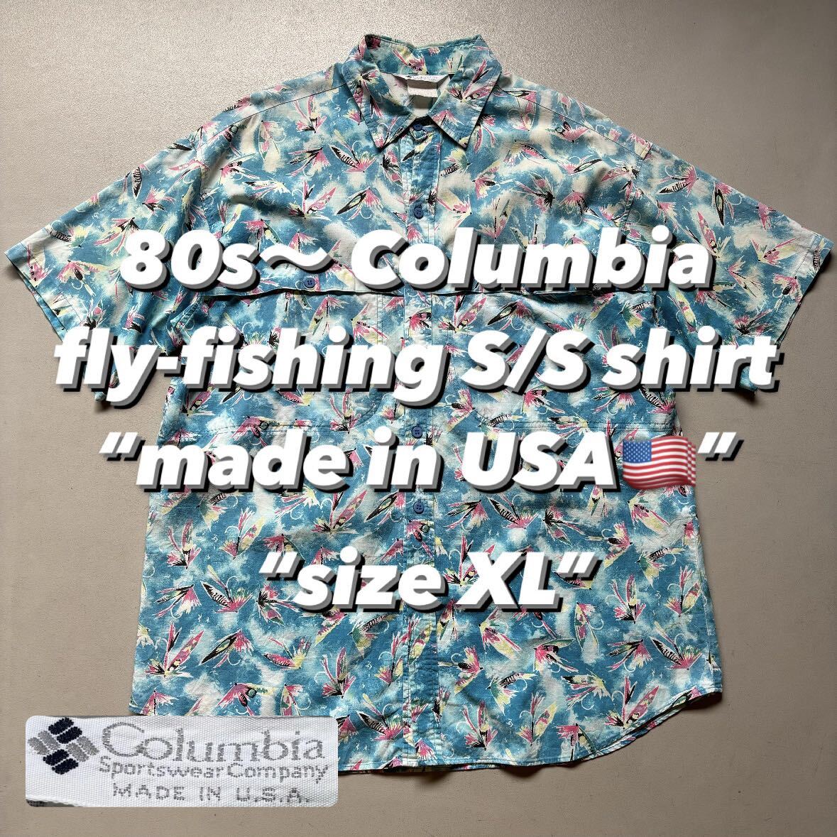 > 80s〜 Columbia fly-fishing S/S shirt “made in USA” “size XL” 80年代 90年代 コロンビア フライフィッシング 半袖シャツ 水色シャツ