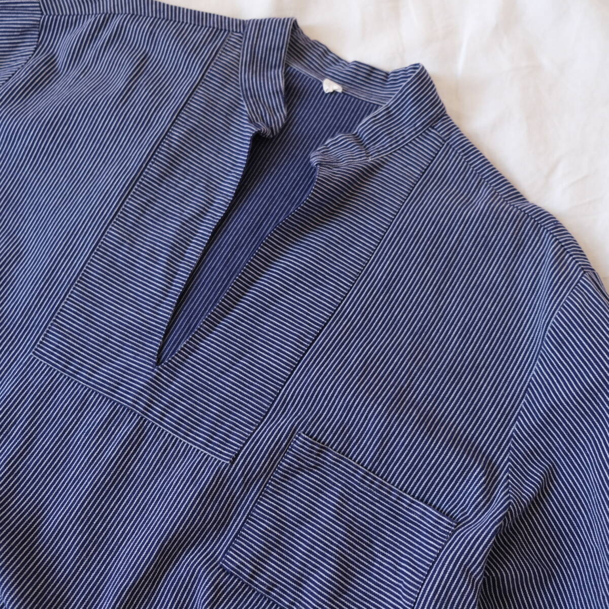 > 【 ドイツ ビンテージ 】コットン フィッシャーマン スモック プルオーバー 長袖シャツ / ネイビー 紺白系 / ヨーロッパ フランス ワーク