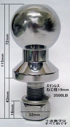 - ステンレスヒッチボール 2インチ ネジ19mm
