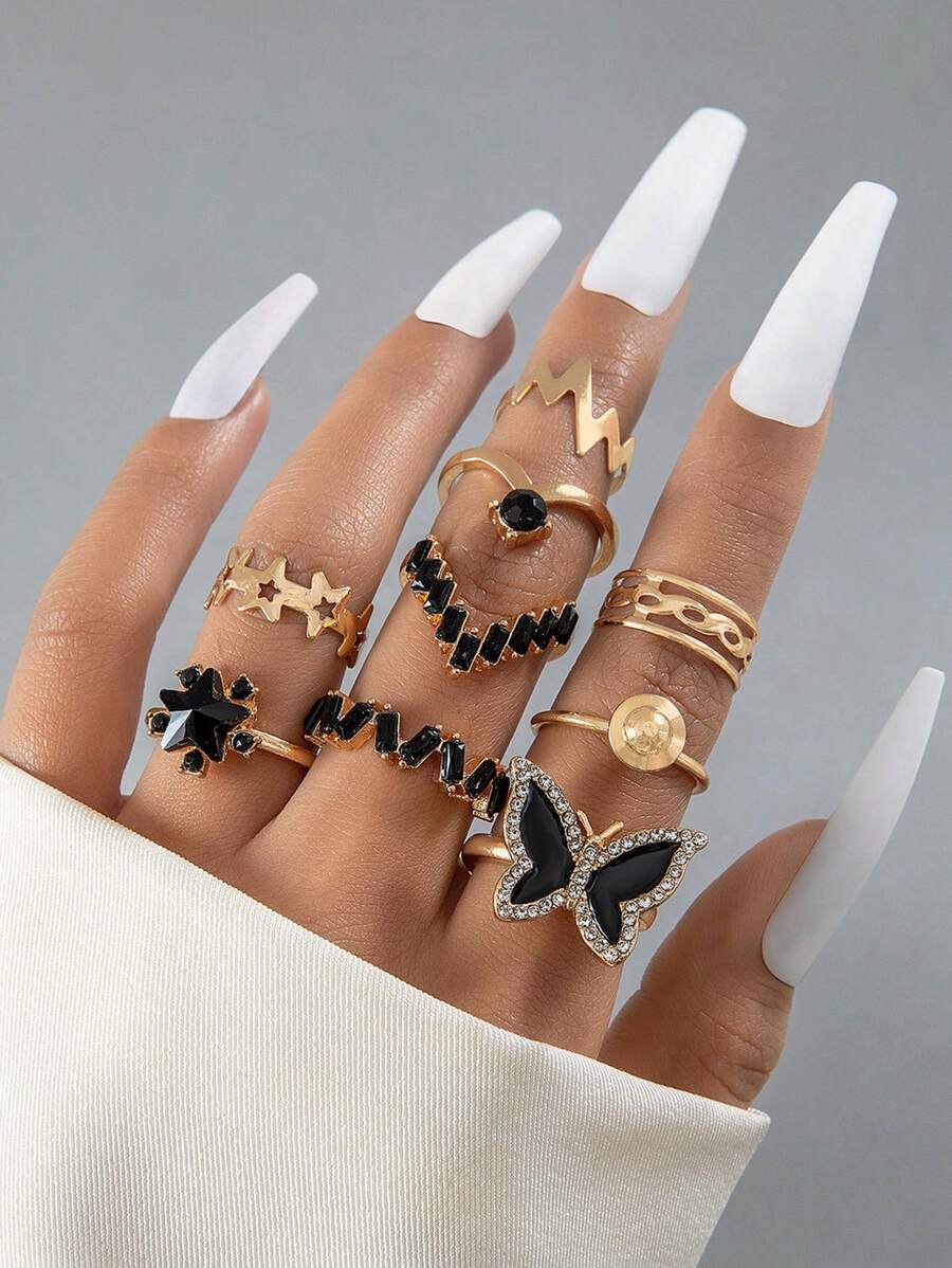 - リング レディース セット バタフライ・スター・キュートデザイン シンプル 9個セット 女性用リング 誕生日・デート・記念日プレゼ