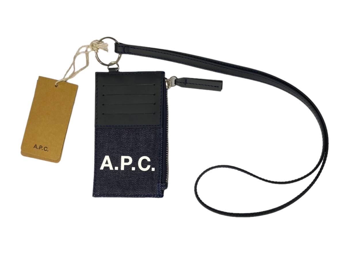 > A.P.C. (アーペーセー) ストラップ付き カードケース コインケース 小銭入れ デニム×レザー CODDP M63527 IAK ブラック×インディゴ/009