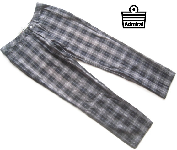 > 高級!!アドミラル Admiral*美シルエット ロゴワッペン付き チェック柄コットンパンツ S グレー×黒 ゴルフ GOLF