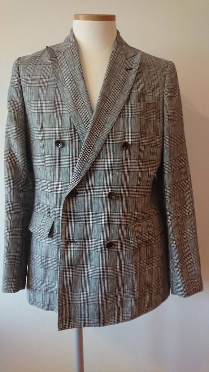 - プラチナコムサ高級グレンチェックダブルジャケットM灰