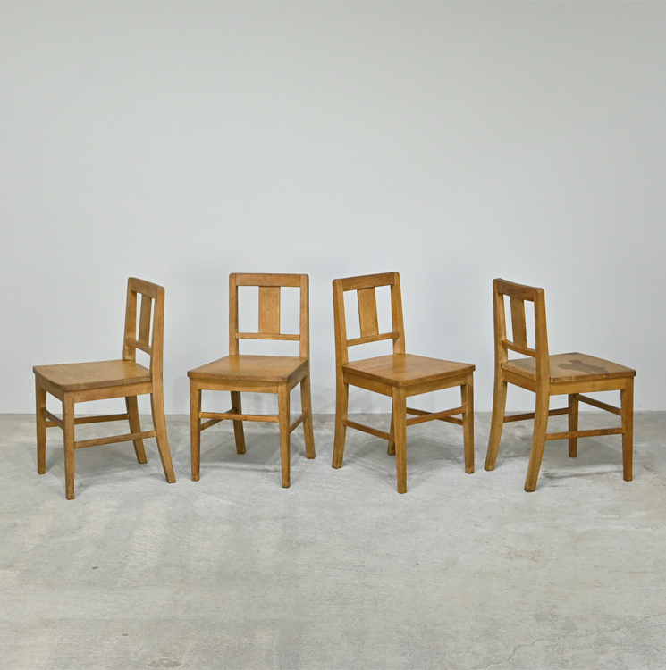> 昭和20年代 ナラ無垢材 古い日本の小椅子 4脚セット/剣持勇 豊口克平 工芸指導所 天童木工 イサムノグチ ジャパニーズモダン ペリアン