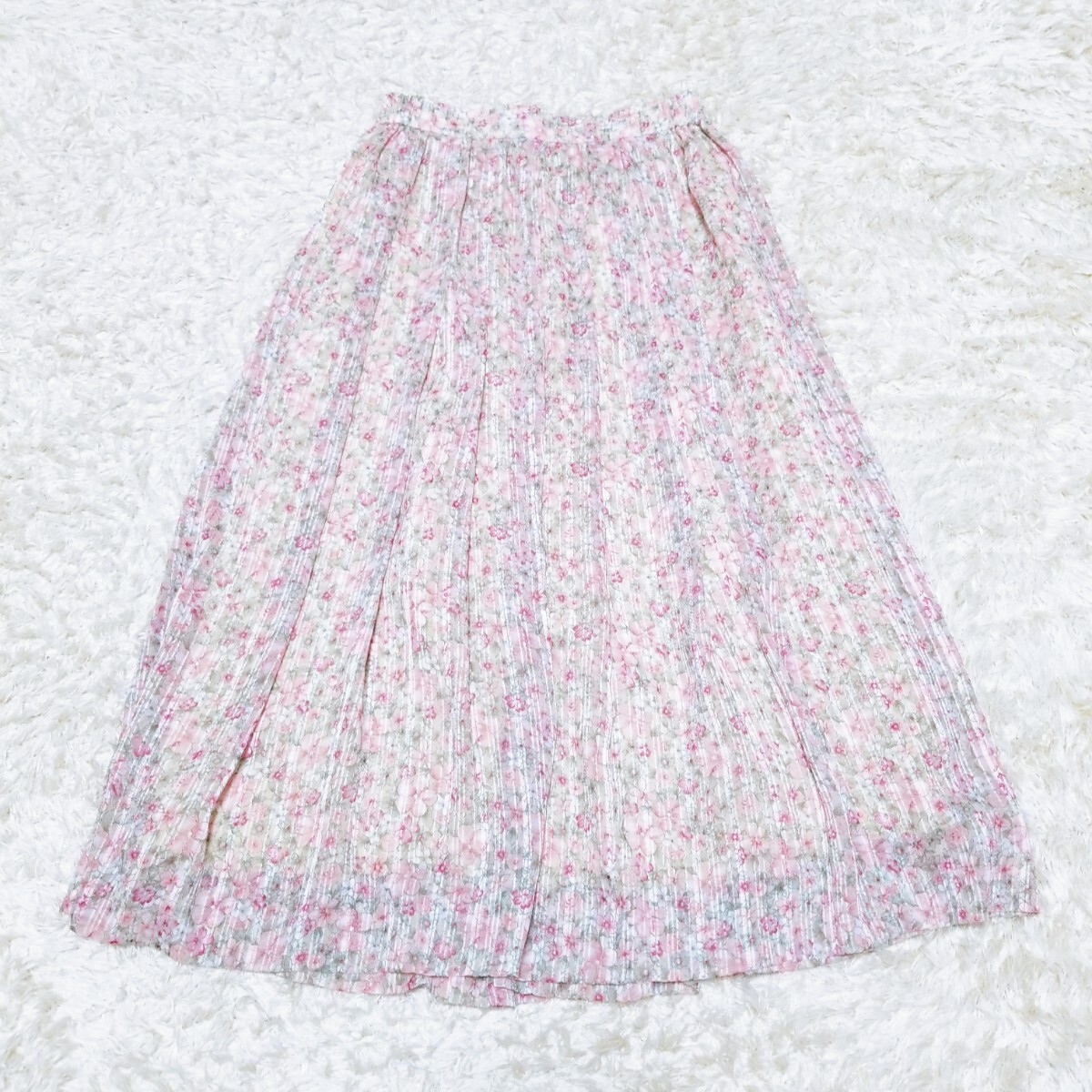 - 送料無料★Y1527 シフォン フレアスカート ミディ丈 ひざ下 サイドゴム バックジップ レディース S相当 ピンク系 花柄 総柄 透け感 可愛い