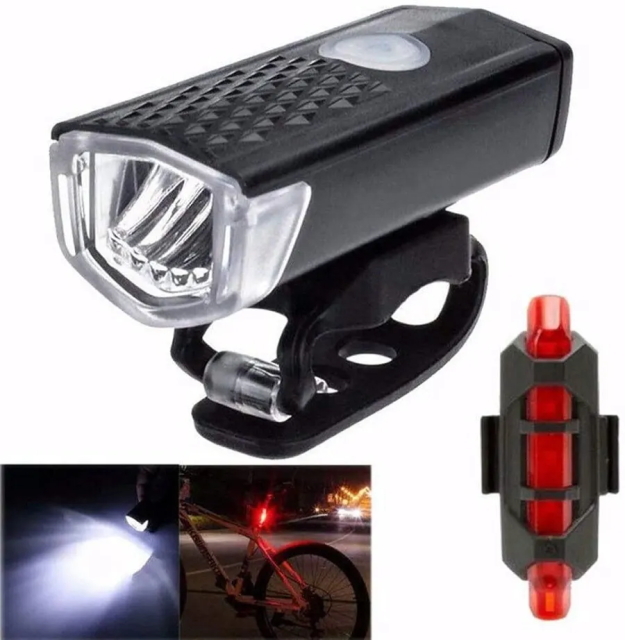 > 激安サイクルライトセット 自転車ライトセット USB充電式LEDライト フロントライトとテールライトセット 明るい自転車ライト 3パターン点灯