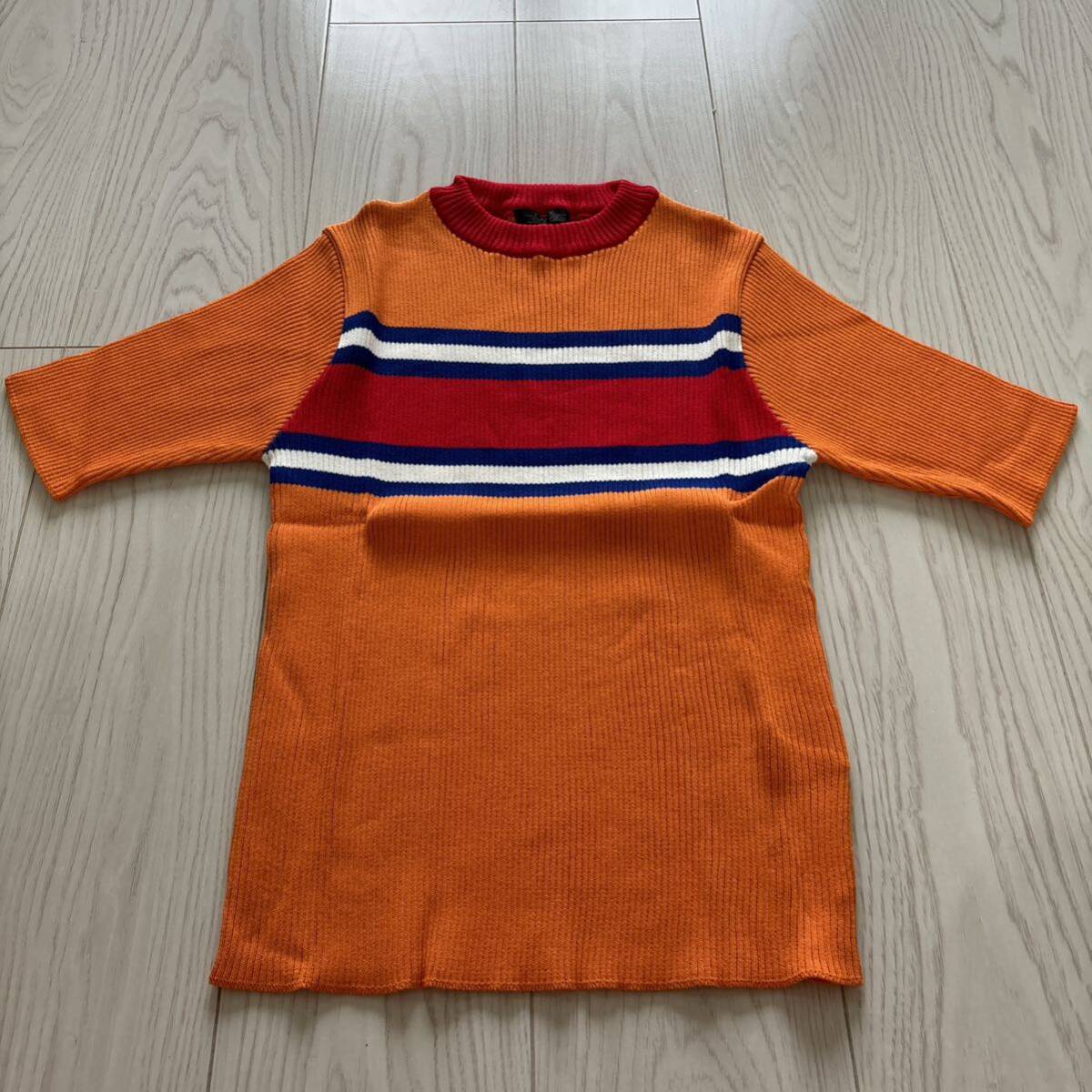 > 未使用●キャンディストリッパー Candy Stripper 半袖 リブニット ボーダー 柄/オレンジ/ライン/赤/レッド/紺色/ネイビー/トップス★1253-4