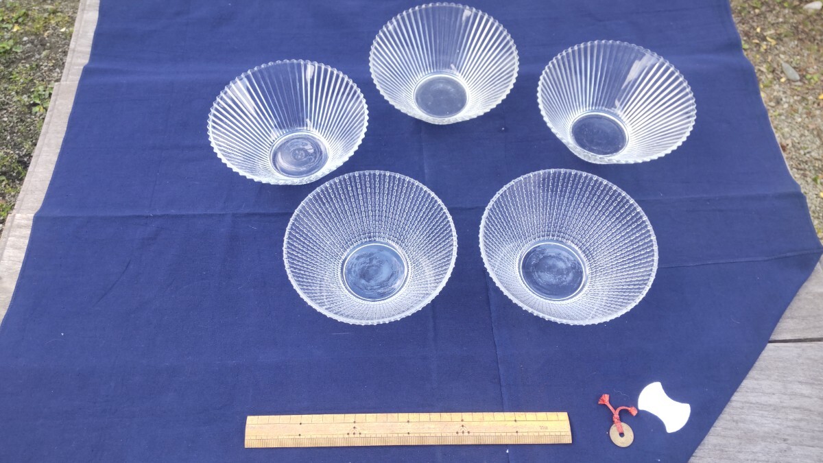 - 昭和中頃 プレスガラス器 そうめん鉢 冷やし中華鉢 2種5点