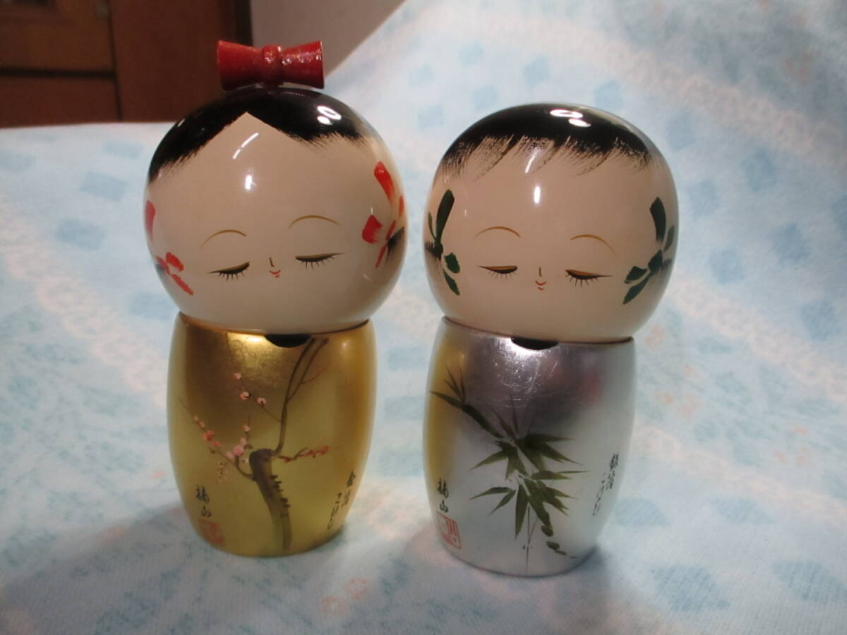 - 飾ってただけ綺麗★金箔 銀箔こけし 楠山作 花わらべ 開運 縁起物 H15cm 日本人形★60
