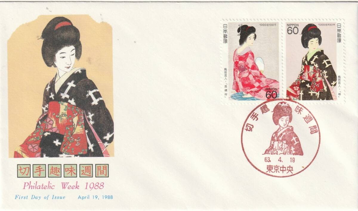 - FDC 1988年 切手趣味週間 長襦袢 60円2貼 NCC
