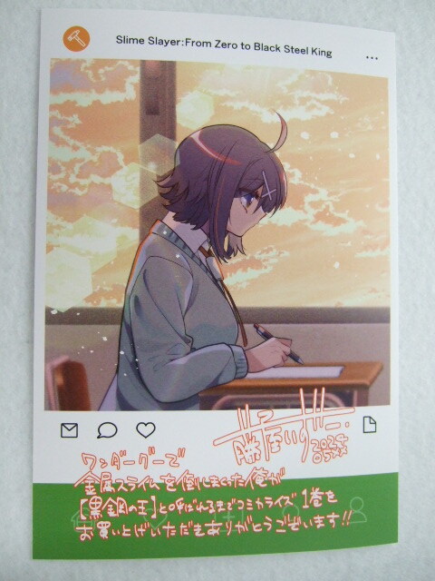 > ワンダーグー 限定 金属スライムを倒しまくった俺が【黒鋼の王】と呼ばれるまで 1巻 ポストカード 240527 特典 WonderGOO 非売 藤屋いずこ