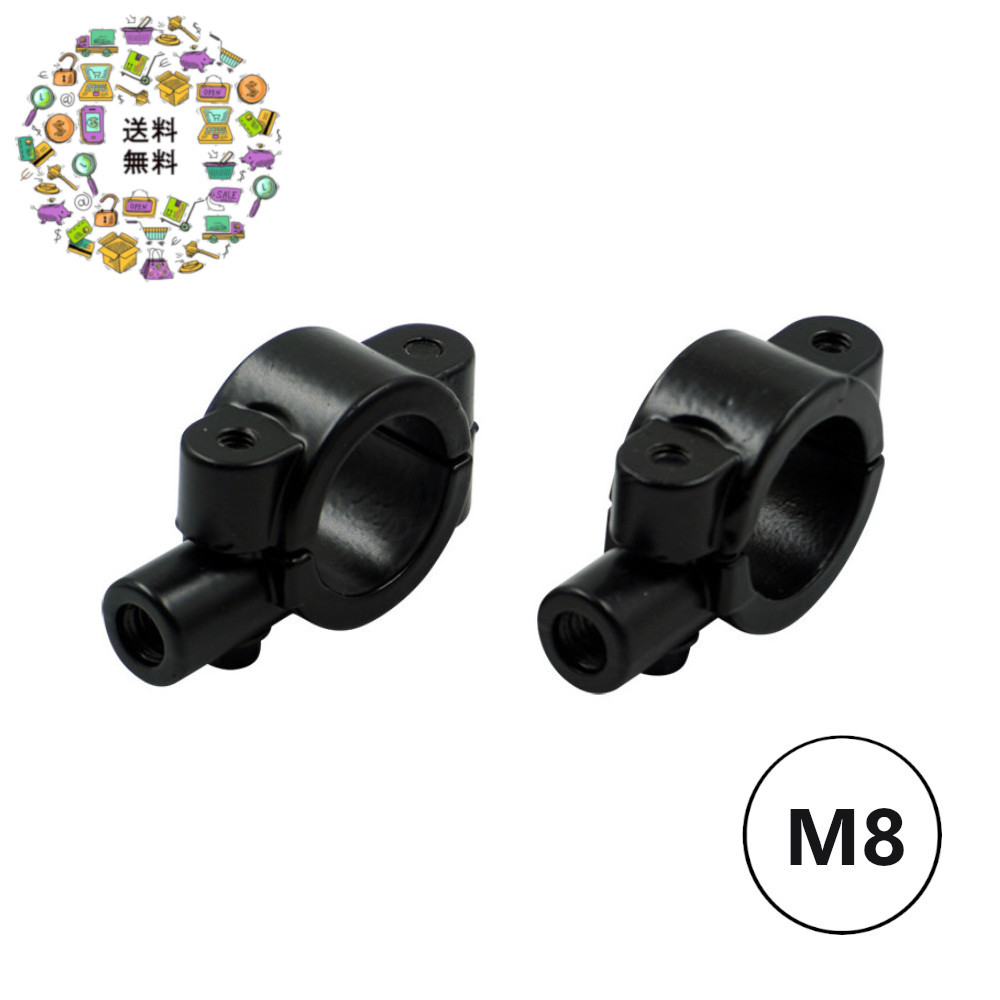 - 【M8 ブラック】ミラークランプ 2個セット 22.2mm ハンドル