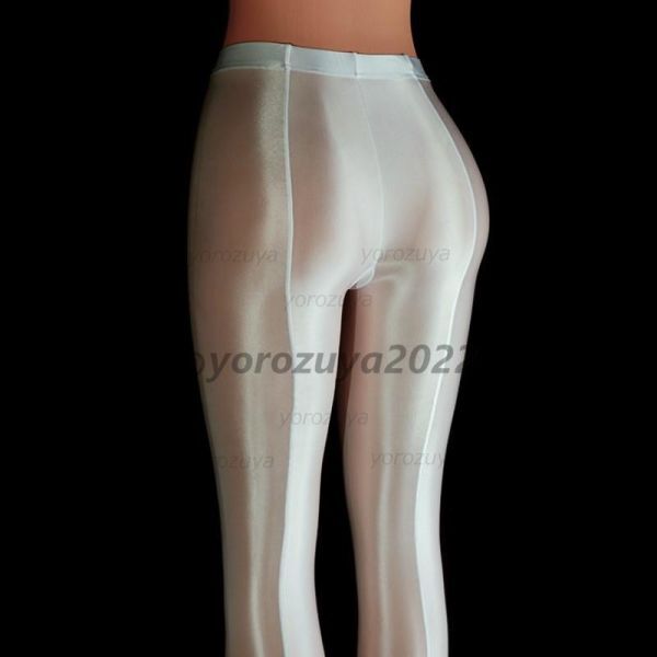 > 117-331-20 新作 ツヤツヤ バックライン 9分丈 光沢 レギンス 【ホワイト,Lサイズ】レディース 女性 ランジェリー セクシー コスプレ .1