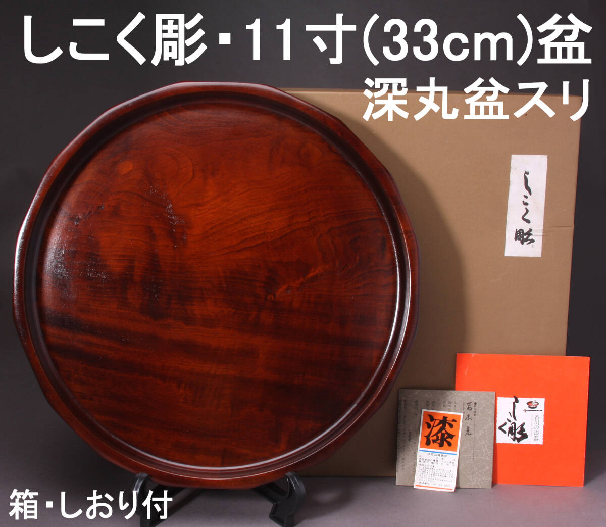 - しこく彫 11寸盆 深丸盆スリ 直径33㎝ 箱・しおり付き KA-7529