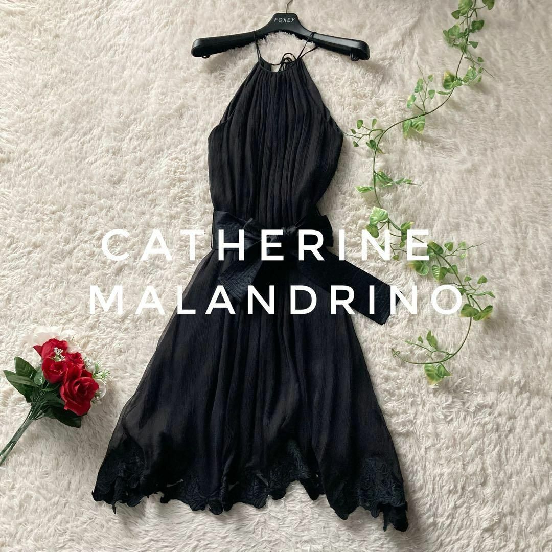 > キャサリンマランドリーノ ピュアシルク ホルターネックドレス レース ブラック 2サイズ CATHERINE MALANDRINO