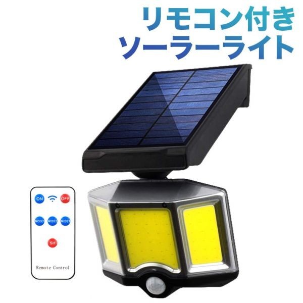 - リモコン付き 投光器 ソーラーライト 66COBLED 3モード 進化版 2個 6000K センサーライト 高輝度人感センサー