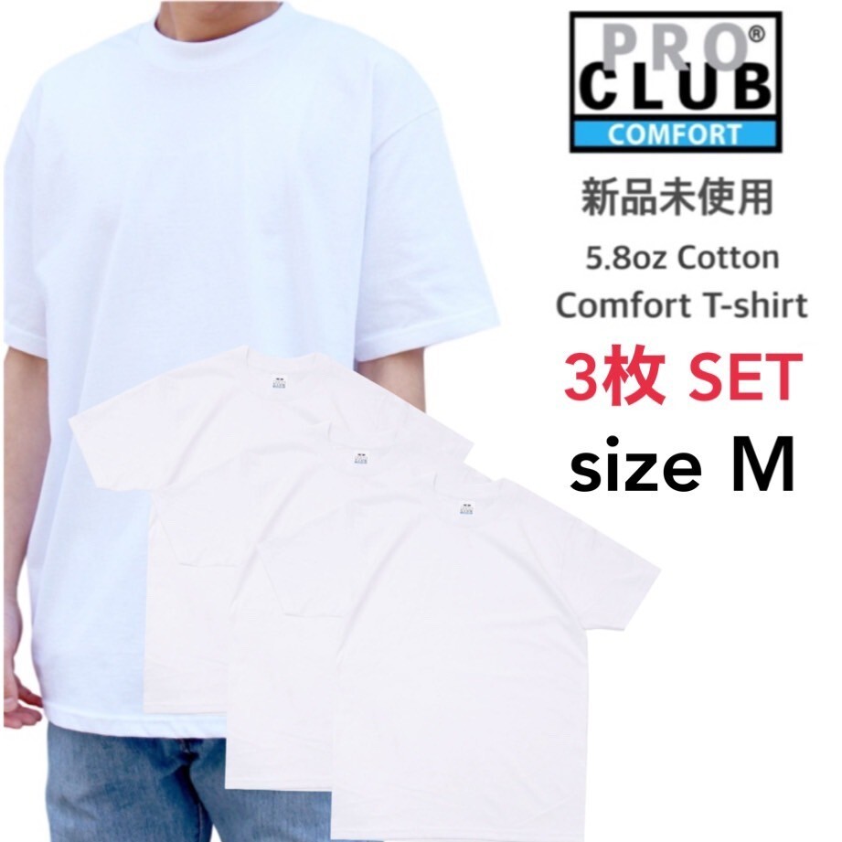 - 新品未使用 プロクラブ 5.8oz コンフォート 無地 半袖 Tシャツ 白 Mサイズ 3枚セット PRO CLUB 102 ホワイト クルーネック