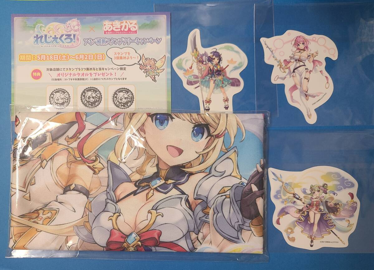 - れじぇくろ! あきかる スタンプラリー オリジナルタオル+ステッカー3枚