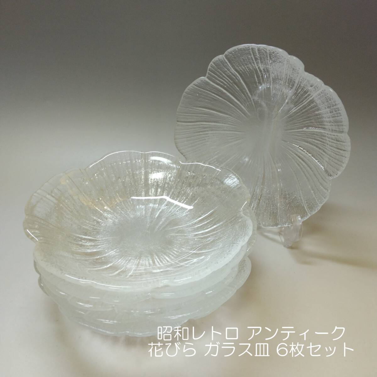 - 【G-16】昭和レトロ アンティーク 花びら柄 ガラス皿 5枚組