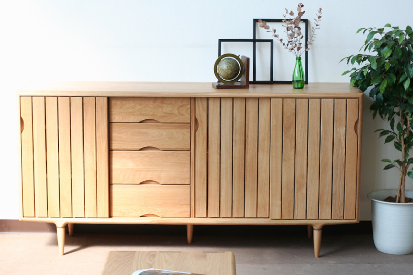 - サイドボード オーク 無垢材 キャビネット 天然木 木製 収納 ナラ材 脚付き 引き戸 おしゃれ 北欧 ナチュラル 引き出し (幅160 ~ 幅170)