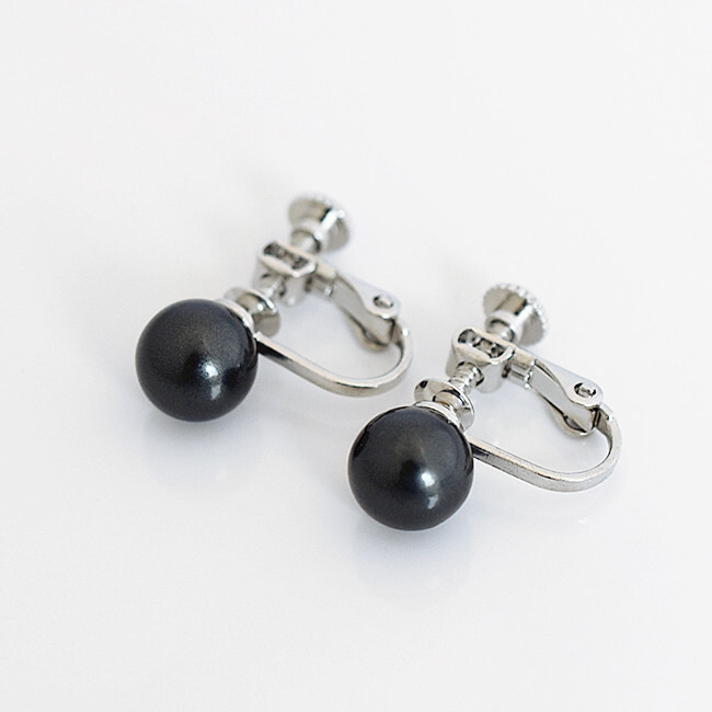 - 冠婚葬祭 貝パール 直径8mm 天然素材 イヤリング ブラック