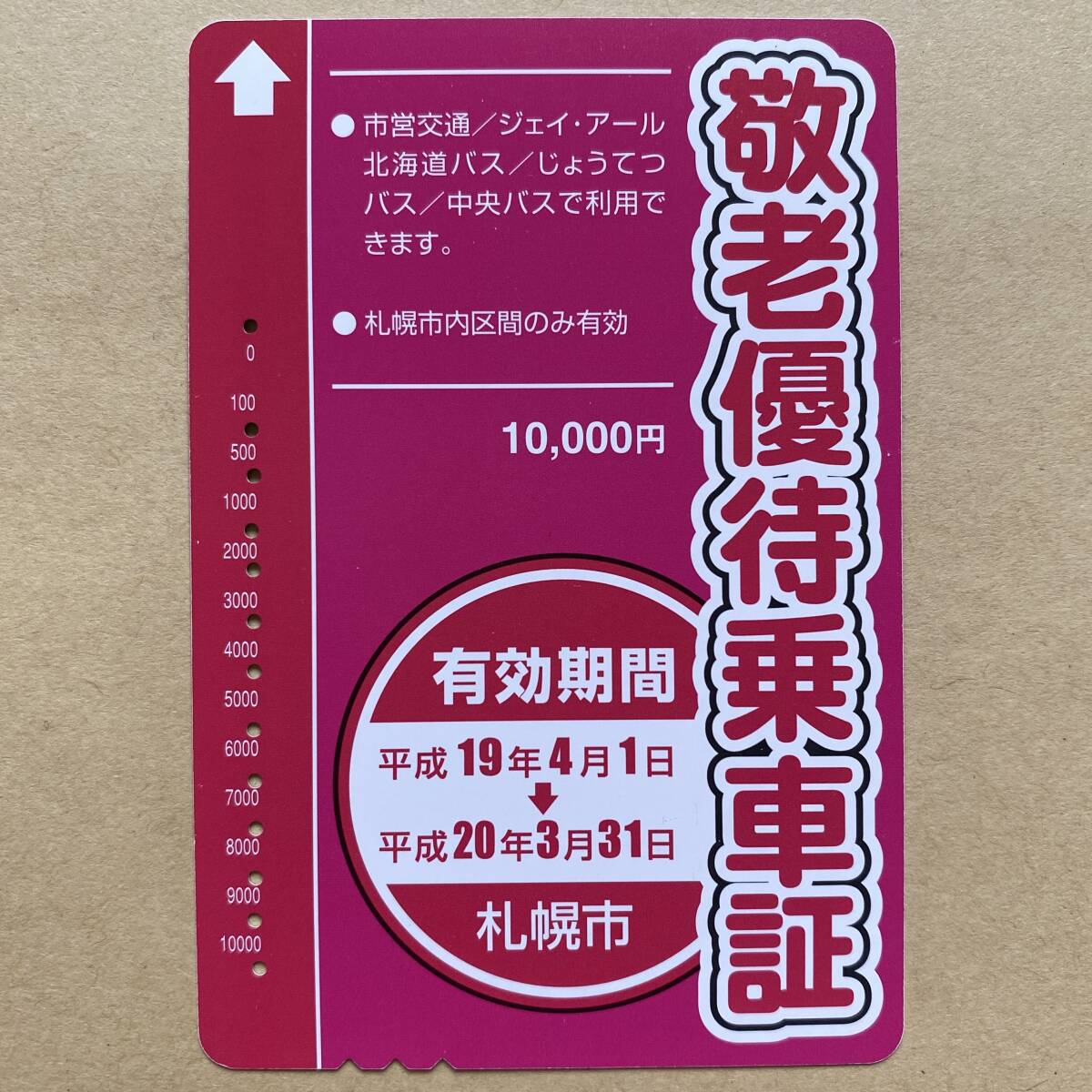- 【使用済】 敬老優待乗車証 札幌市 有効期間 平成19年4月1日→平成20年3月31日