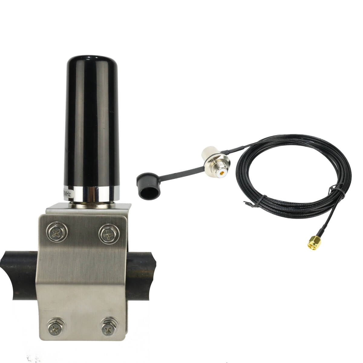 - 144/430MHz帯 約9㎝ 極太ショートアンテナ(黒) クランプアンテナ基台 同軸RG316 5m MJL-SMA接栓付 ベランダ/パイプステー/ミラー/ルーフ