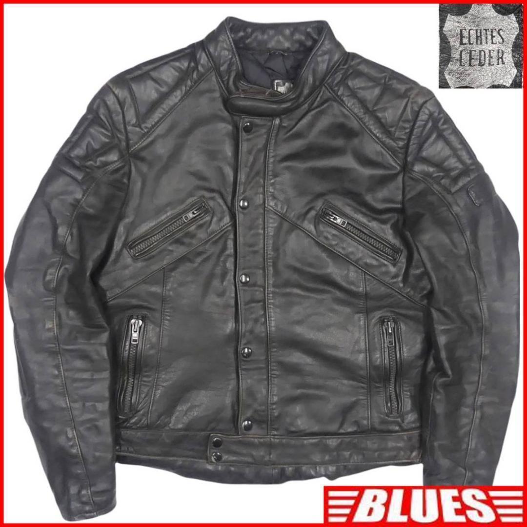 > 即決★ECHES LEDER★メンズL位 レザーライダースジャケット 54 黒 本革 シングル 本皮 パンクロック キルティング パット ツーリング