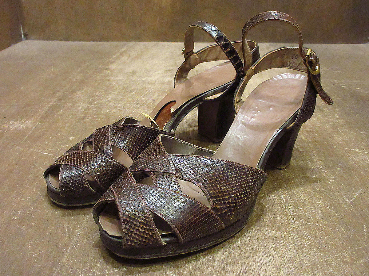 > ビンテージ~40's●リザードスキンミュール茶size 8B●240603i2-w-sdl-245cmレディース靴サンダルオープントゥエキゾチックレザー30sヒール