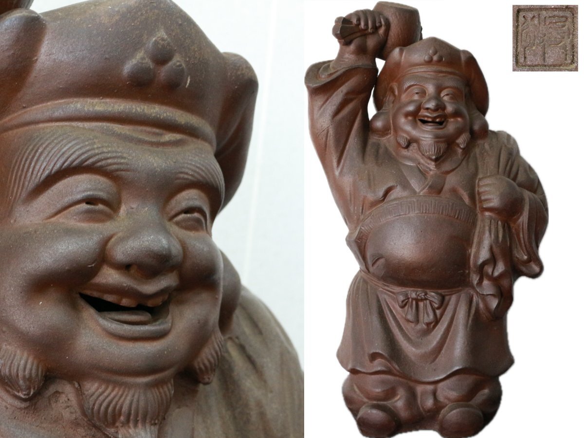 > ■備前■木村友敬・大型・大黒天像・立像・置物・在銘・高さ約63㌢・床置・七福神・縁起物・f1127h