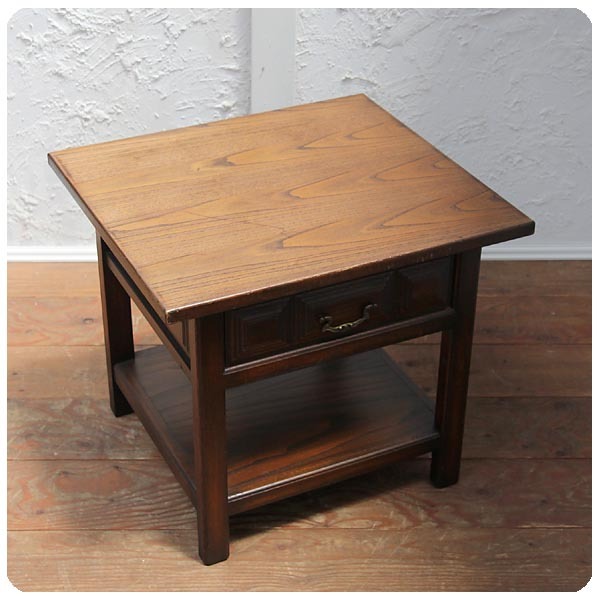 - イギリス アンティーク調 引き出し付きローテーブル 木製 コーヒーテーブル 家具「ドロワー付」P-449