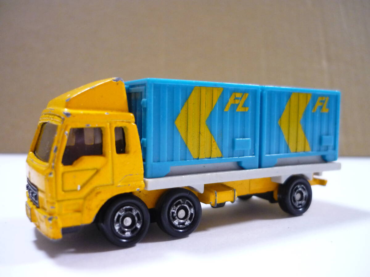 > [管00]【送料無料】ミニカー 1/102 三菱ふそう コンテナトラック(イエロー×スカイブルー) 「トミカ No.74」 タカラトミー ミニチュア