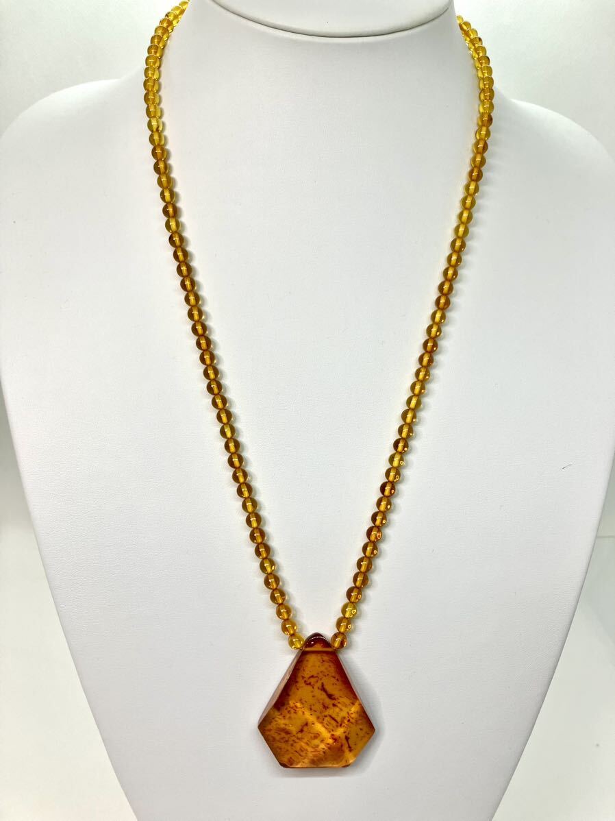 - 【新品】リトアニア産琥珀ロングネックレス*コハクこはく*アンバー*シンプル*天然石ネックレス*一点もの