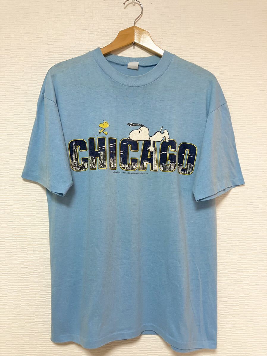 > 80s USA vintage snoopy ピーナッツ スヌーピー ウッドストック Tシャツ L XL CHICAGO SCHULZ 1958.1965 United Fealure Syndicate.Inc.