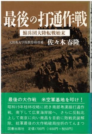 - (古本)最後の打通作戦 鯨兵団大陸転戦始末 佐々木春隆 図書出版社 SA5433 19910325発行