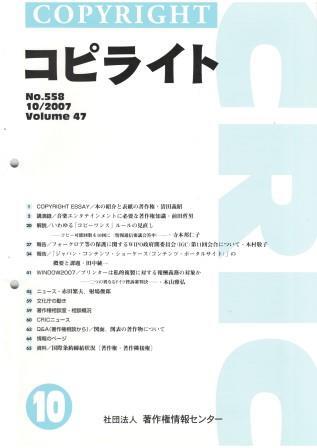 - (古本)コピライト 2007年10月号 コピライト 著作権情報センター Z04185 200710発行