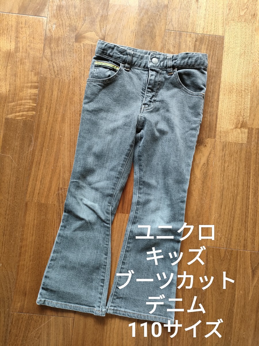 - ユニクロ キッズ ブーツカット デニム ストレッチ グレー 110サイズ
